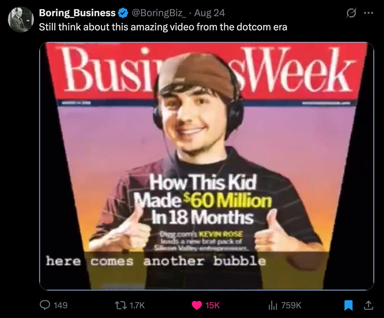 All of this is not to say that many investors are not going to make money in AI. You can make a huge amount of money in bubbles simply by trading the bubble, for example - we are seeing a lot of secondary activity in the likes of OpenAI, xAI, Anthropic, etc. at the moment, and people are doing well. But this is trading, not investing, and it’s risky in illiquid markets.