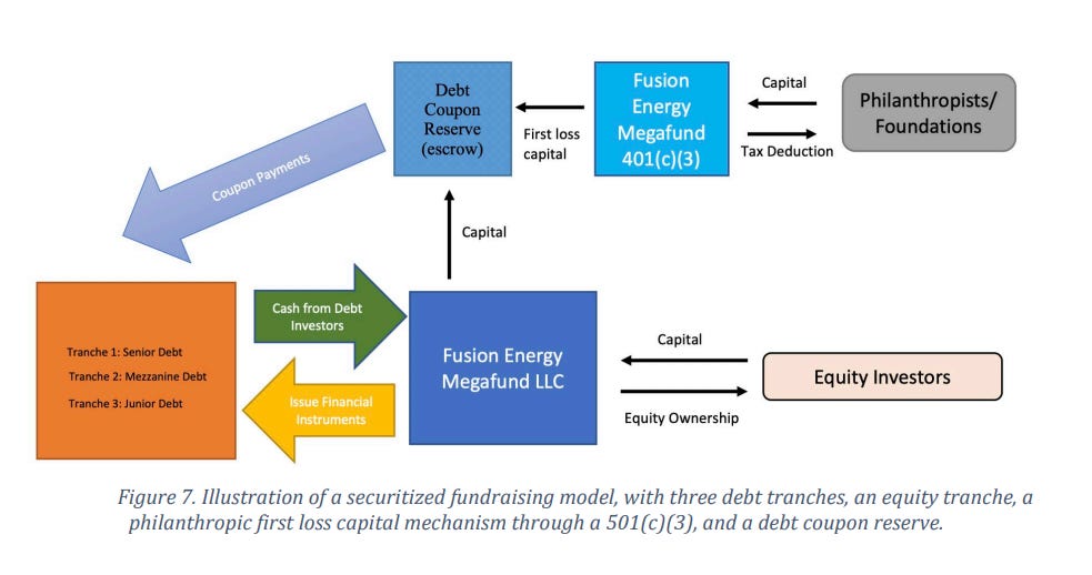 “We further de-risk the megafund by leveraging first loss capital guarantees from philanthropic sources and governments to fund coupon payments to senior and mezzanine bondholders in its early years.”